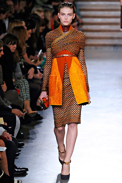What was most appealing was the long, lean silhouette, strongest in the calf-length coats that polished all the roughness. Many had unfinished fur collars (almost like pelts) and embroidery fuzzily fused with the suede. That sewing technique was repeated on body-skimming dresses so that it appeared as if they were being overtaken by some untamed element. In the end it added up to clothes that looked, well, civilized.